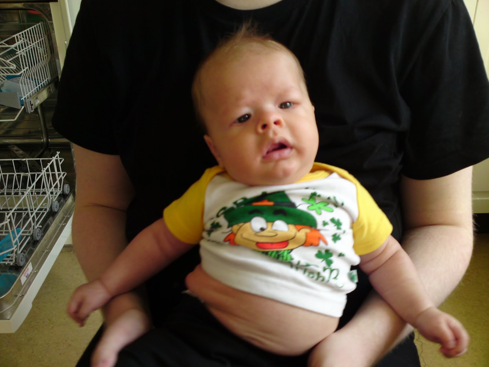 Oswald hade en lite för liten tshirt, magen fick inte riktigt plats varken i tröjan eller i byxorna.